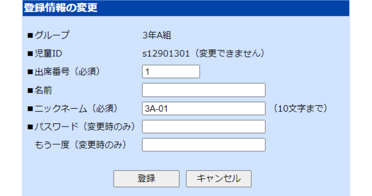 4.変更したいところを入力し、「登録」ボタンをクリックする。