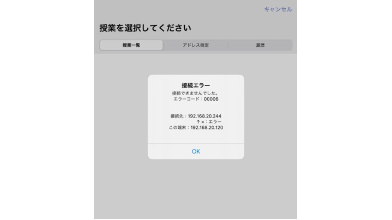 先生機にて、授業を立ち上げ、症状が出ているiPad1台のみ接続を試みる。