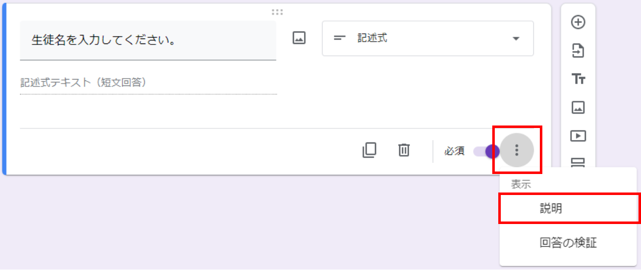 10.右下の「・・・」をクリックし、「説明」を選択する。