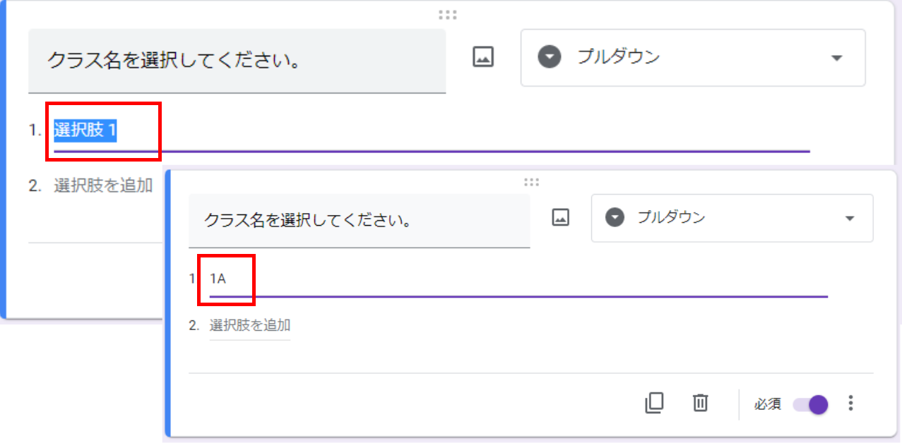 24.「選択肢1」をクリックし、選択肢を入力する。