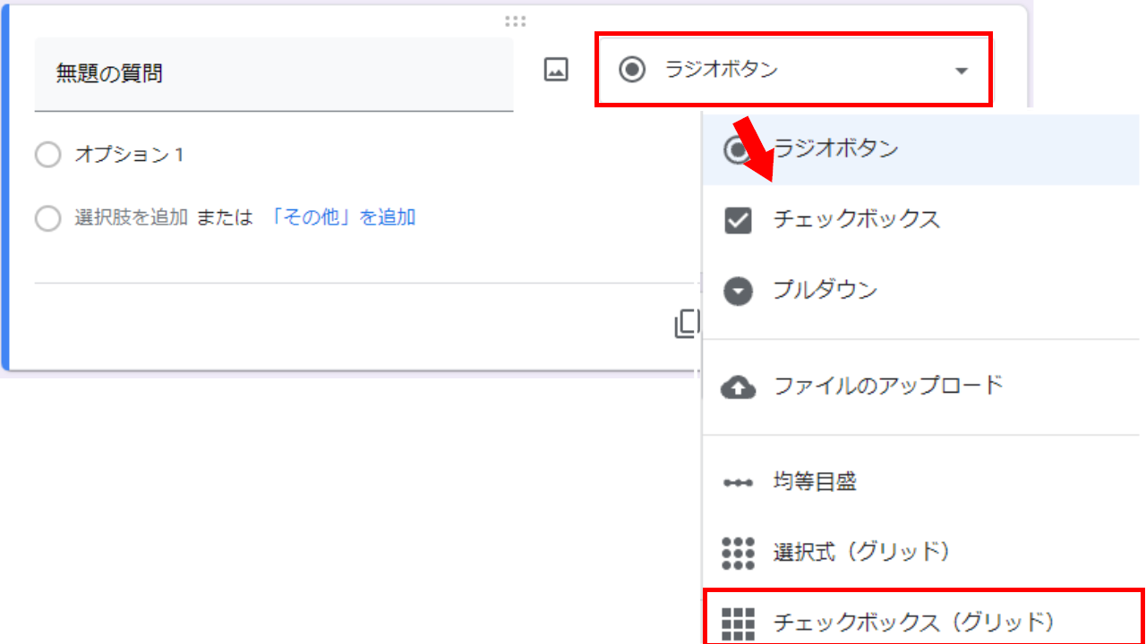 28.「ラジオボタン」をクリックし、「チェックボックス(グリッド)」を選択し、