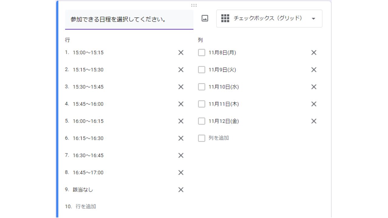 30.行の「1行目」をクリックし、選択肢を入力する。