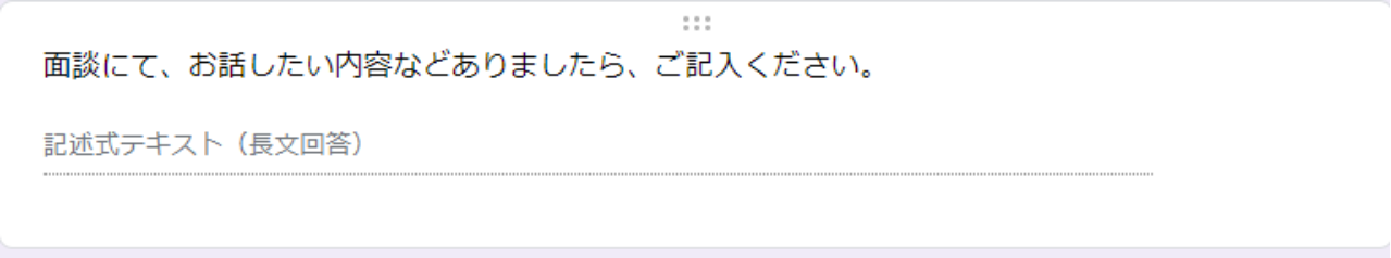 例)面談にて、お話したい内容などありましたら、ご記入ください。