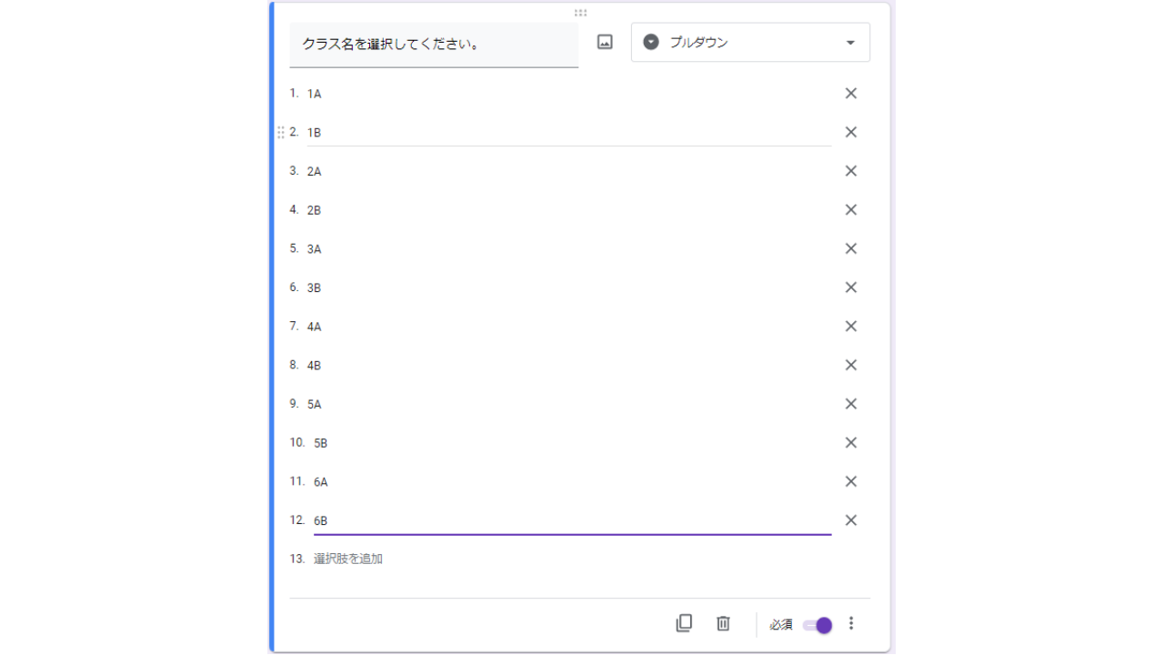 19.「選択肢を追加」をクリックし、2つ目以降の選択肢を入力する。