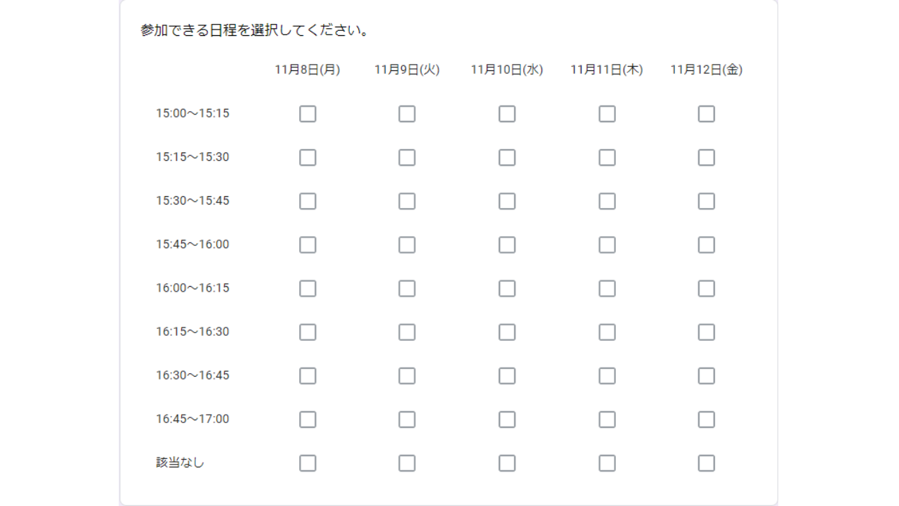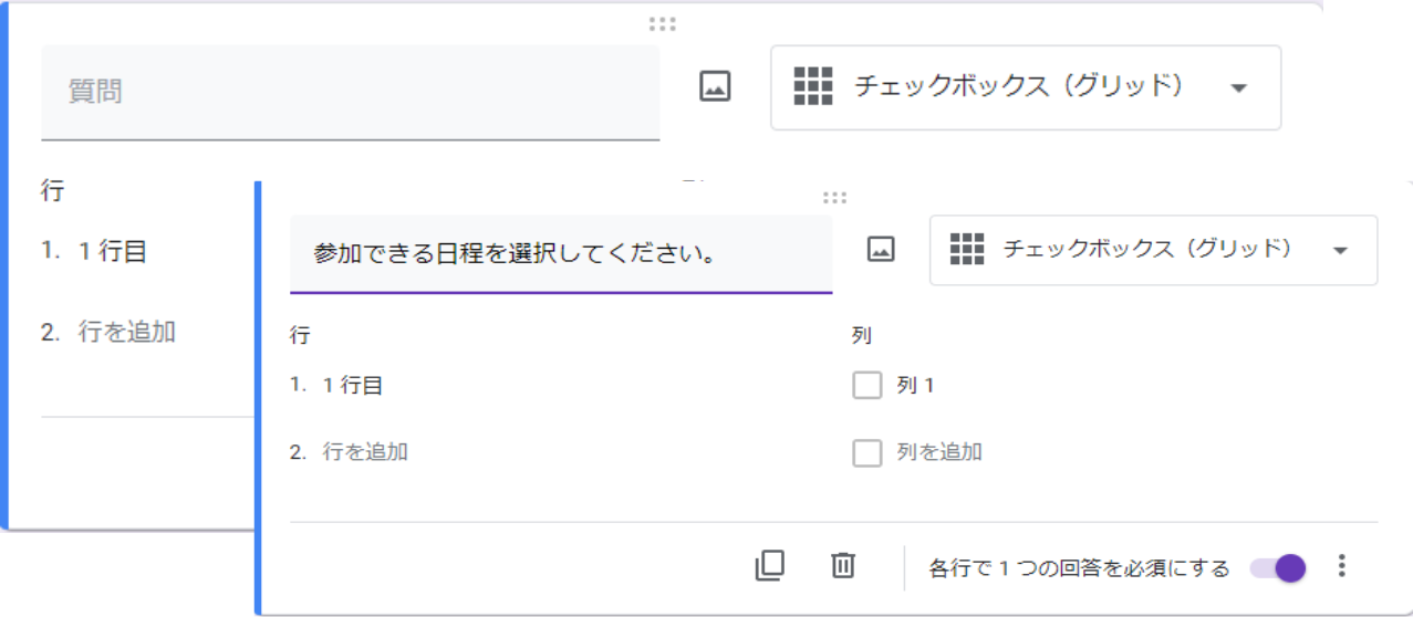 1つの質問に対して、複数のチェックボックスを設定できる。 |