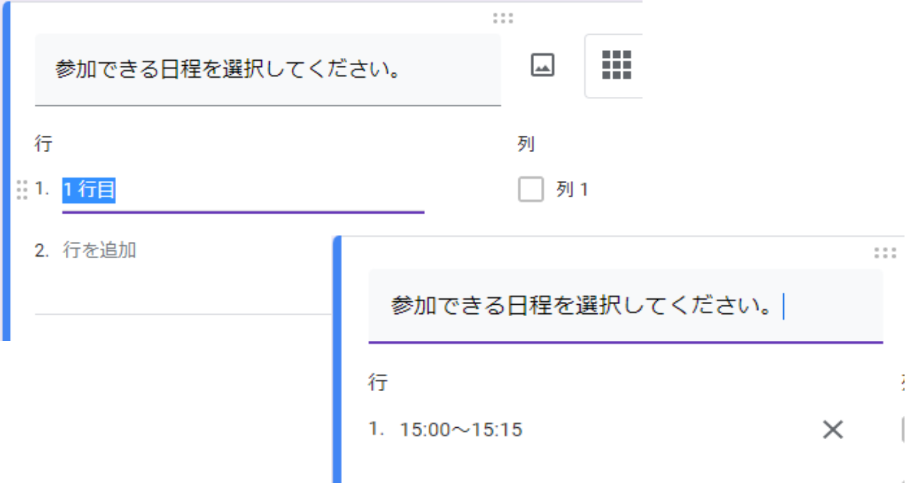 30.行の「1行目」をクリックし、選択肢を入力する。