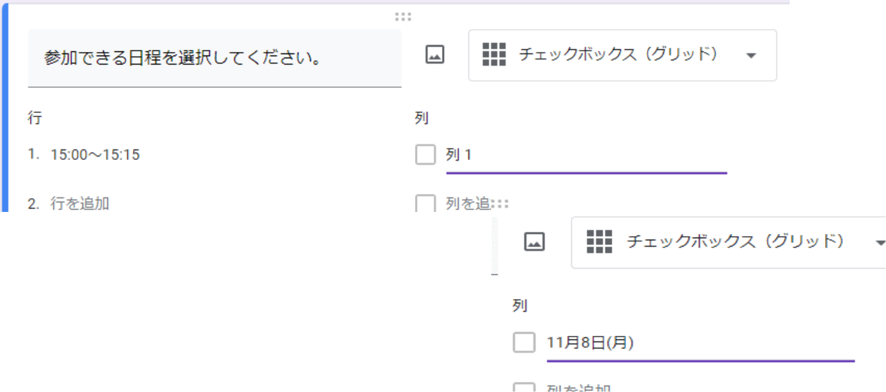 31.列の「1列目」をクリックし、選択肢を入力する。