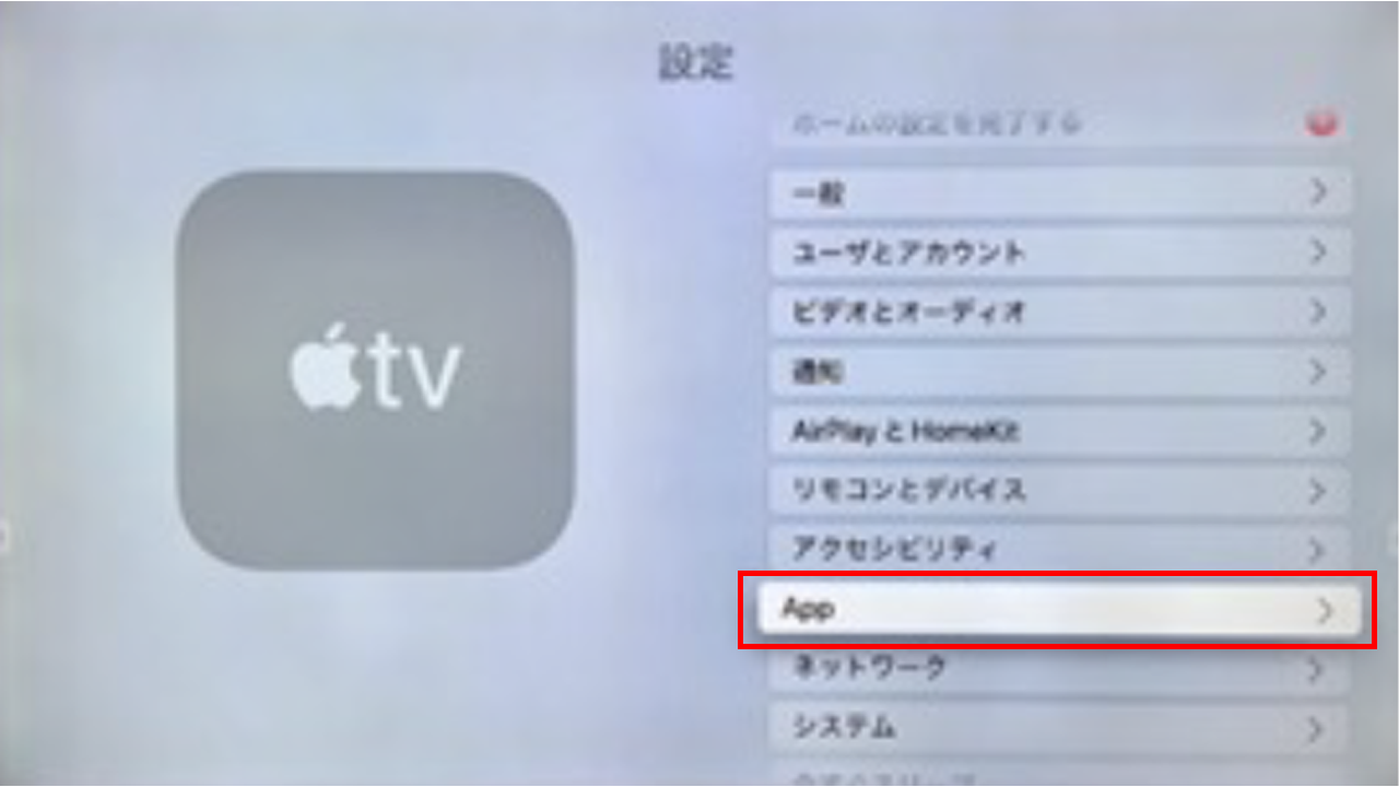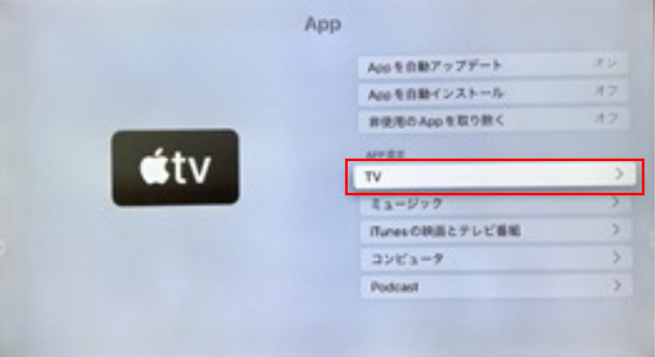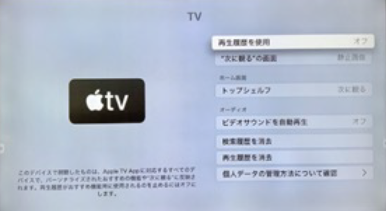 AppleTVが起動した際に、自動的に動画(AppleTVのCM)が再生しない設定を行います。
